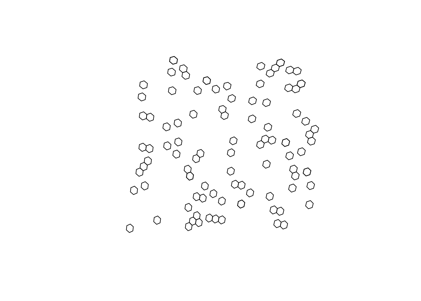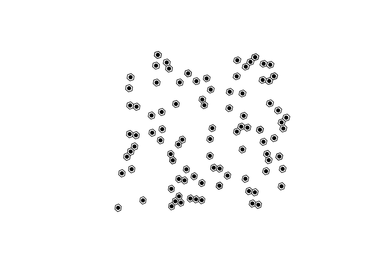 # fetch h3 columnh3s <- h3_cells[["h3"]]# get there centersh3_centers <-h3_to_points(h3s)# plot the hexagons with the centersplot(st_geometry(h3_cells))plot(h3_centers, pch =16, add =TRUE, col ="black")